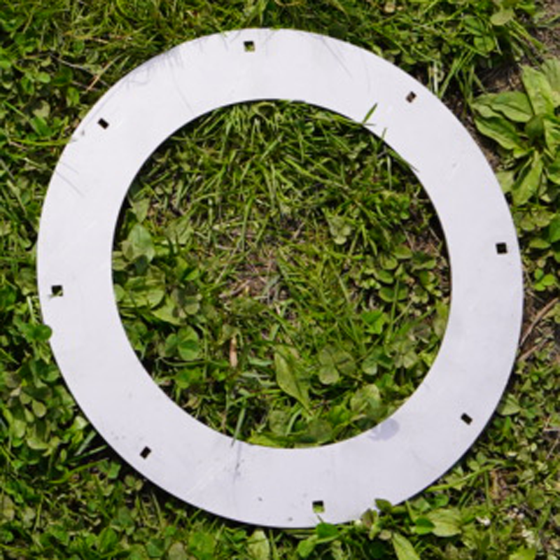④内側カバーをはめます。小さめに丸めておいて、はめこみながら広げてください。丸い穴が開いている方が上です。